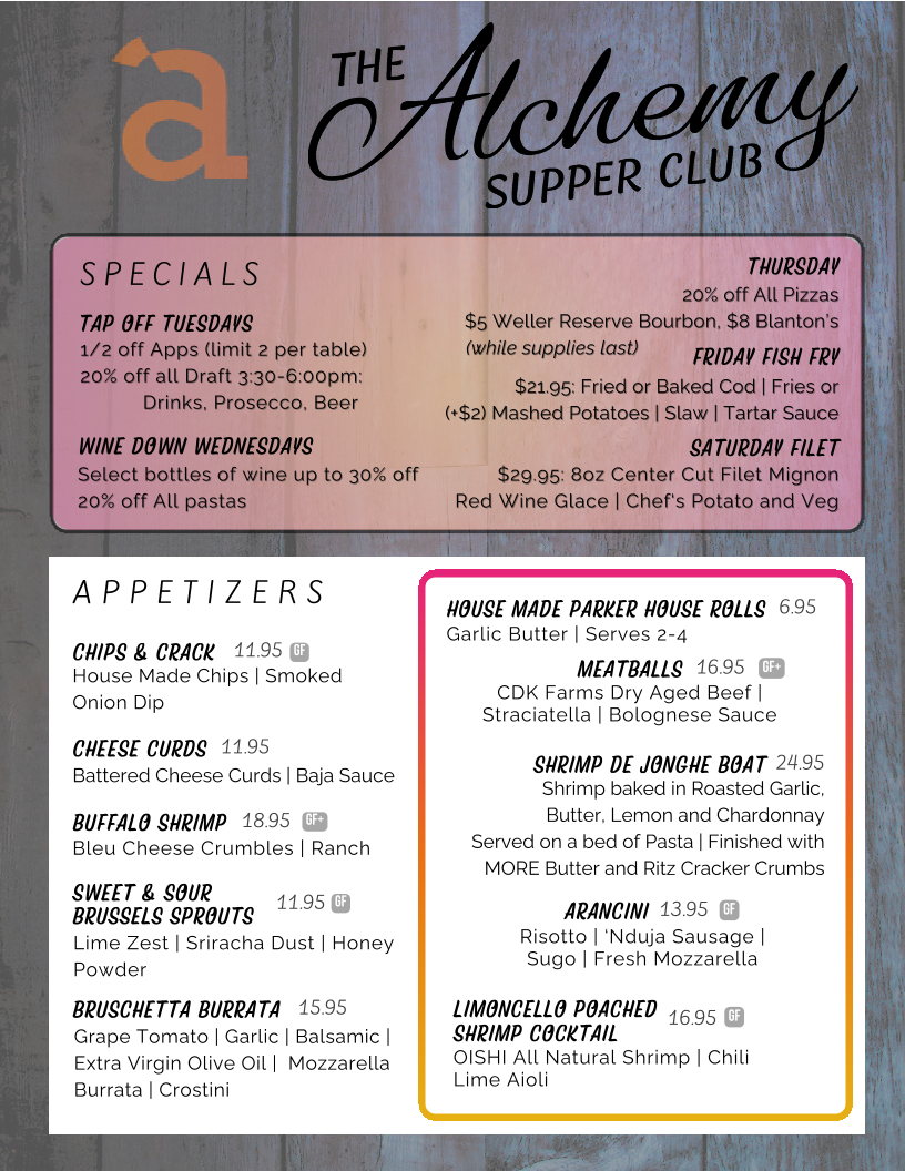 Welcome to Alchemy at Aldeen, a culinary haven located in Rockford, IL, that tantalizes the senses with its diverse menu. The restaurant offers a vibrant range of appetizers, such as their popular Buffalo Shrimp and Truffle Grana Padano Fries, ideal for sharing or indulging solo. For pizza lovers, the Pineapple Express and Margherita deliver unique flavors on a perfectly crafted sourdough crust.